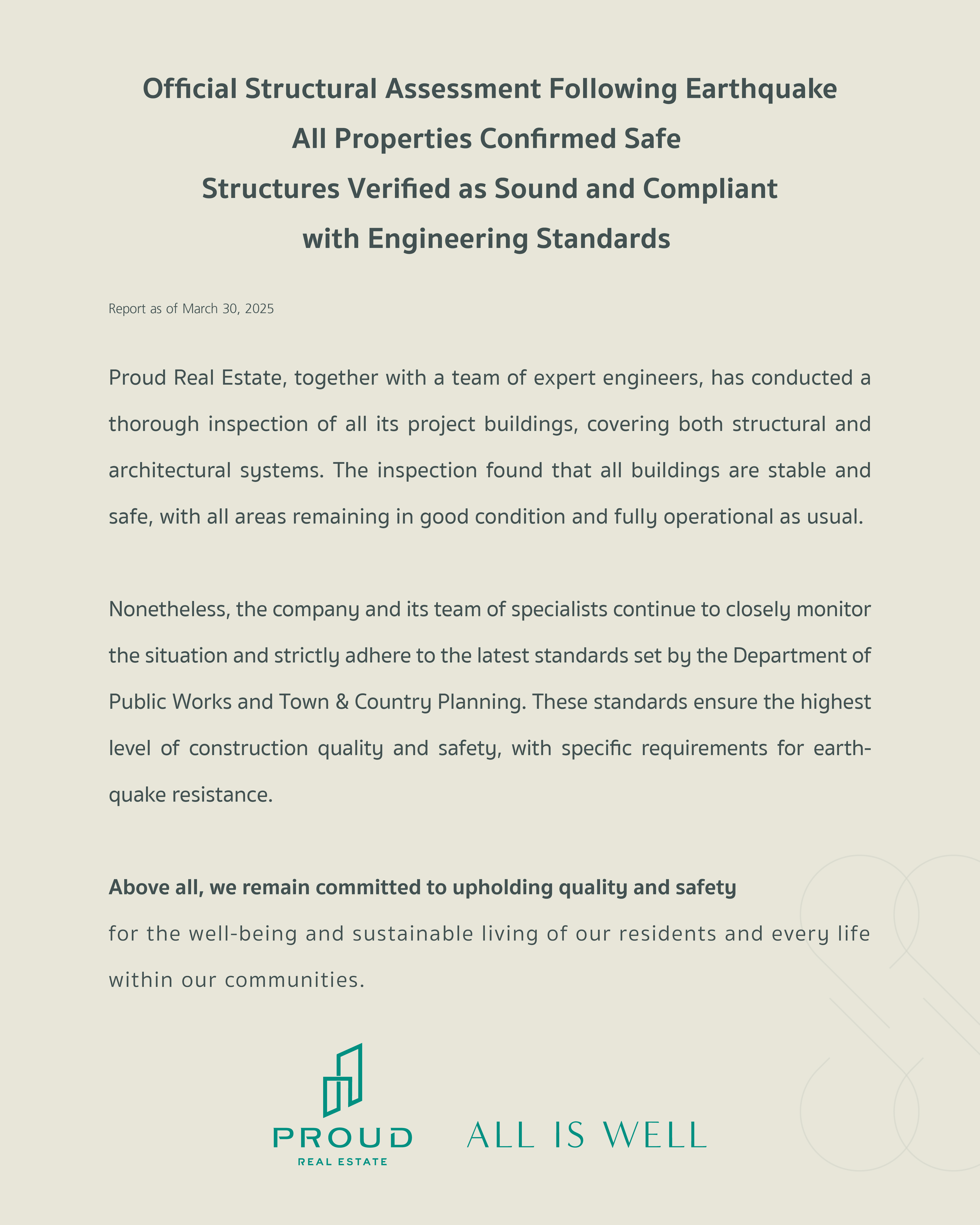 Proud Real Estate Provides Update on Project Inspections Following Earthquake to Ensure Everyone’s Safety